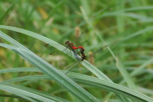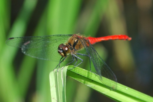 草むらを好むようで、川岸や木道などでよく見かけます。成熟オスの赤は、アカトンボの中でもひときわ鮮やかな美しい種です。