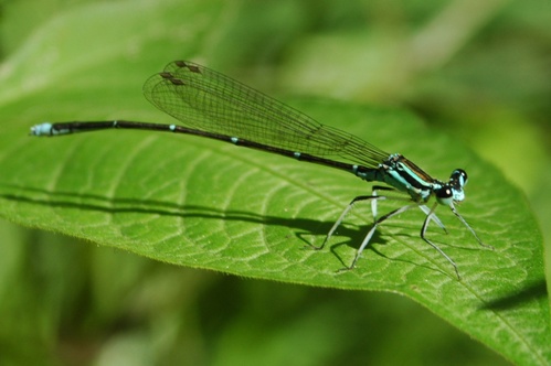 公園よりも周辺の森林に点在する池の方が多い種です。比較的小さいイトトンボです。