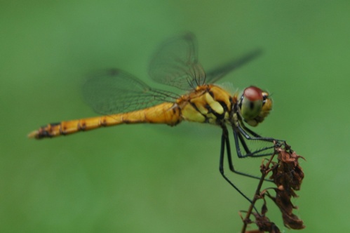 名前は黄色いトンボの意味ですが、黄色というよりはオレンジ色のトンボです。寒さには最も強い種で、11月でも見かける事があります。
