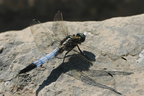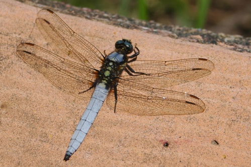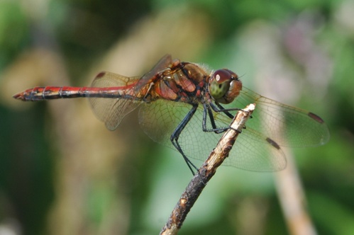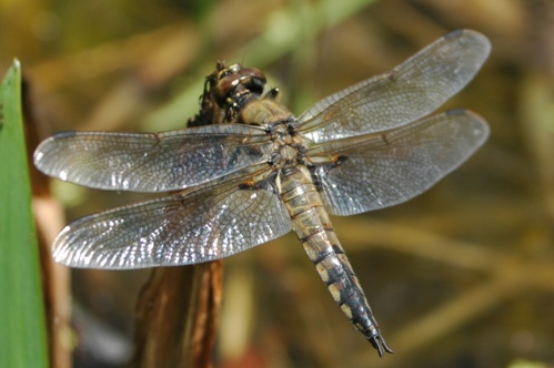 ハネに帯状の色が入るので、他種とは最も見分けやすいトンボのひとつです。西岡では割合少ないトンボです。