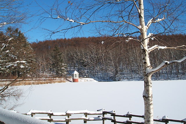 which centers around a pond and consists of