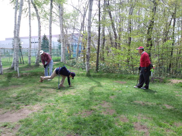 シラカバの林の中のコースで、パークゴルフを楽しむグループの方たちに出会いました。