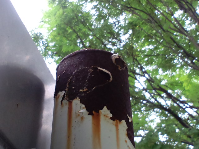 巡回スタッフが、テニスコート近くの看板の支柱にハチの巣を見つけました。 最近、この付近でハチを見かけることが多くなっていて、公園をご利用頂く方からも、目撃情報が寄せられていました。 状況を確認し、今回は巣を撤去することにしました。 写真は、作った巣を壊した後の様子。 お盆が過ぎると、秋めいてきますが、まだまだ油断なりませんね。
