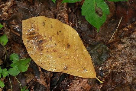 ホオノキ、少し小さい葉っぱ、秋の落ち葉は濃い茶色に。