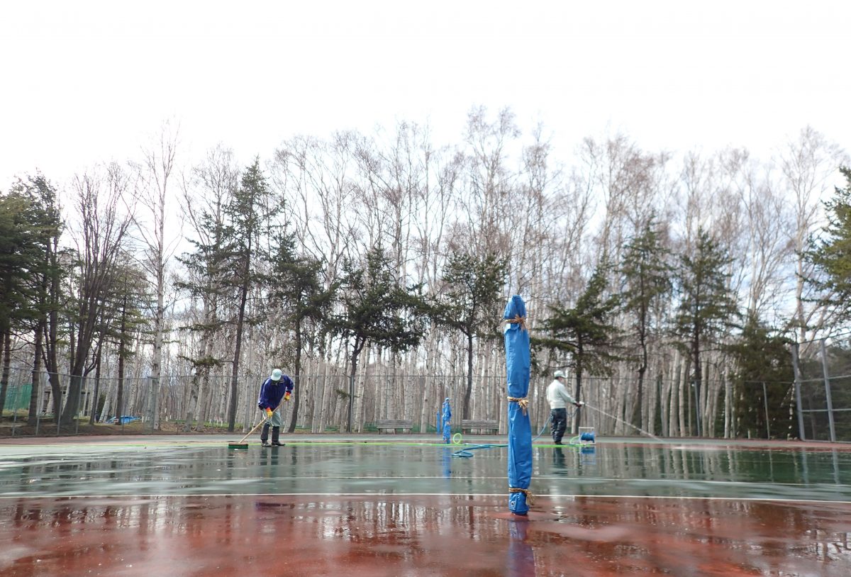 その準備のため、先日テニスコートの洗浄作業を行いました。