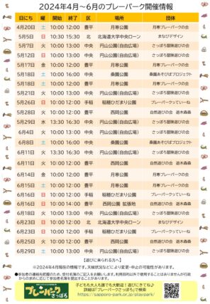 さて、4~6月に札幌市内で開催するプレーパーク開催情報をお伝えします!