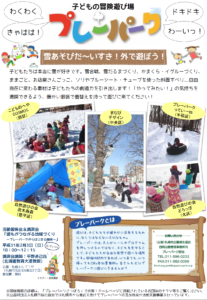 今年は雪が少ないまま、残すところ1週間となりました。 そんな中、プレーパークでは子どもたちが元気に雪遊びをする姿があります! 年明けから年度末までの間、各地で活動がありますので、 ぜひ開催情報を確認の上、遊びにきてください! PDFはこちら