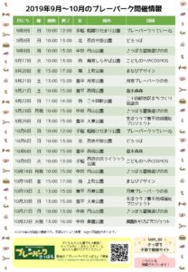 2019年9~10月の開催情報です