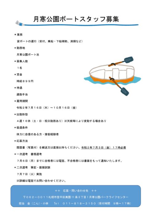 ※7月6日までに合格者には電話、不合格者には書面をもって通知します。