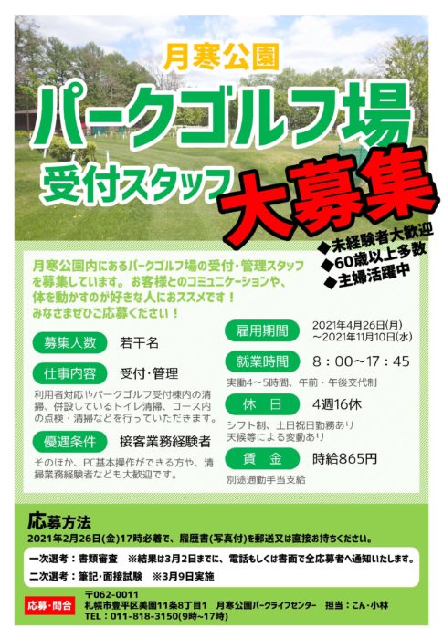月寒公園パークゴルフ場で働くスタッフを募集します。
