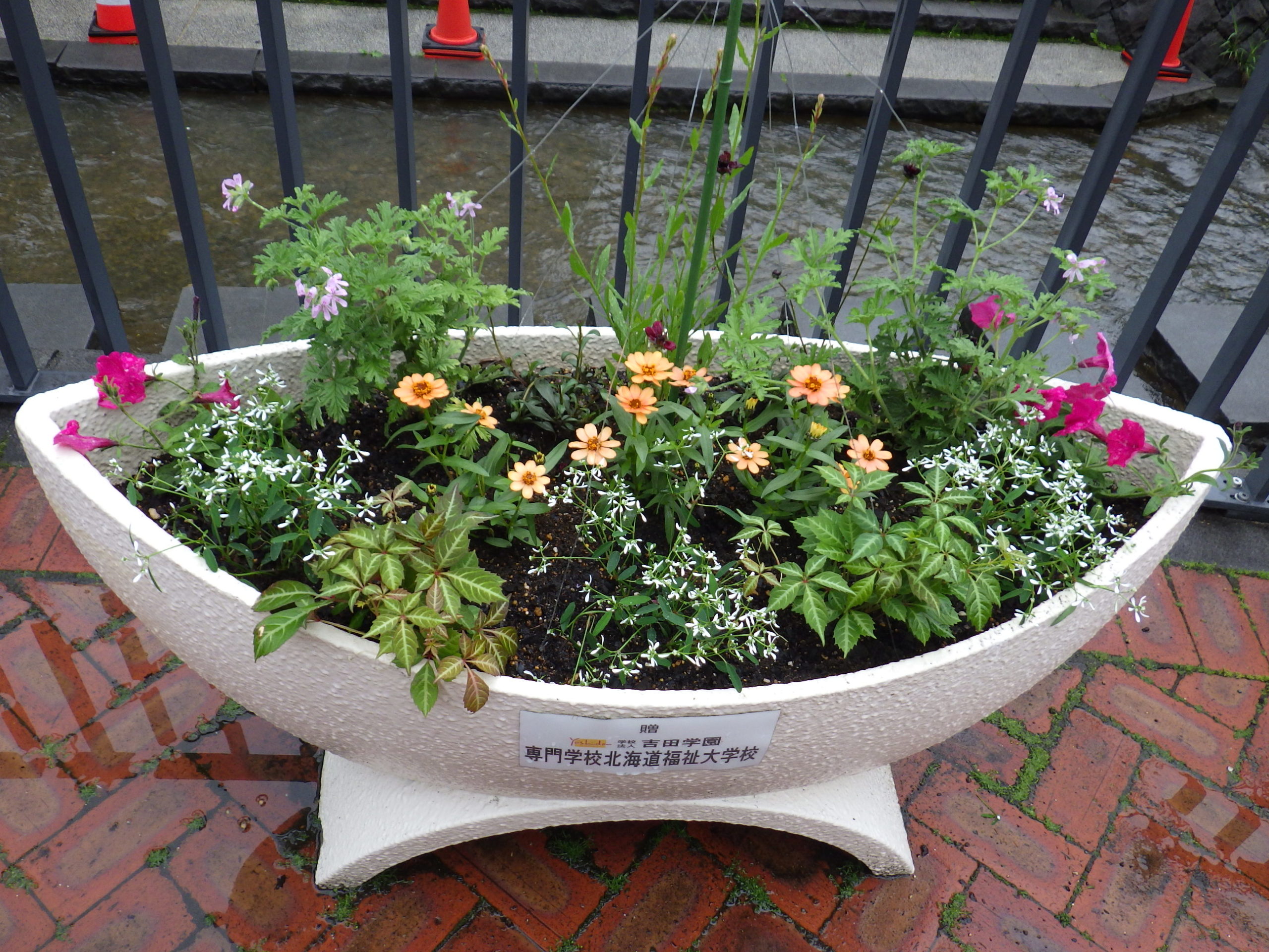 5月27日に植え込んだ吉田学園からの寄付の船形コンテナの花