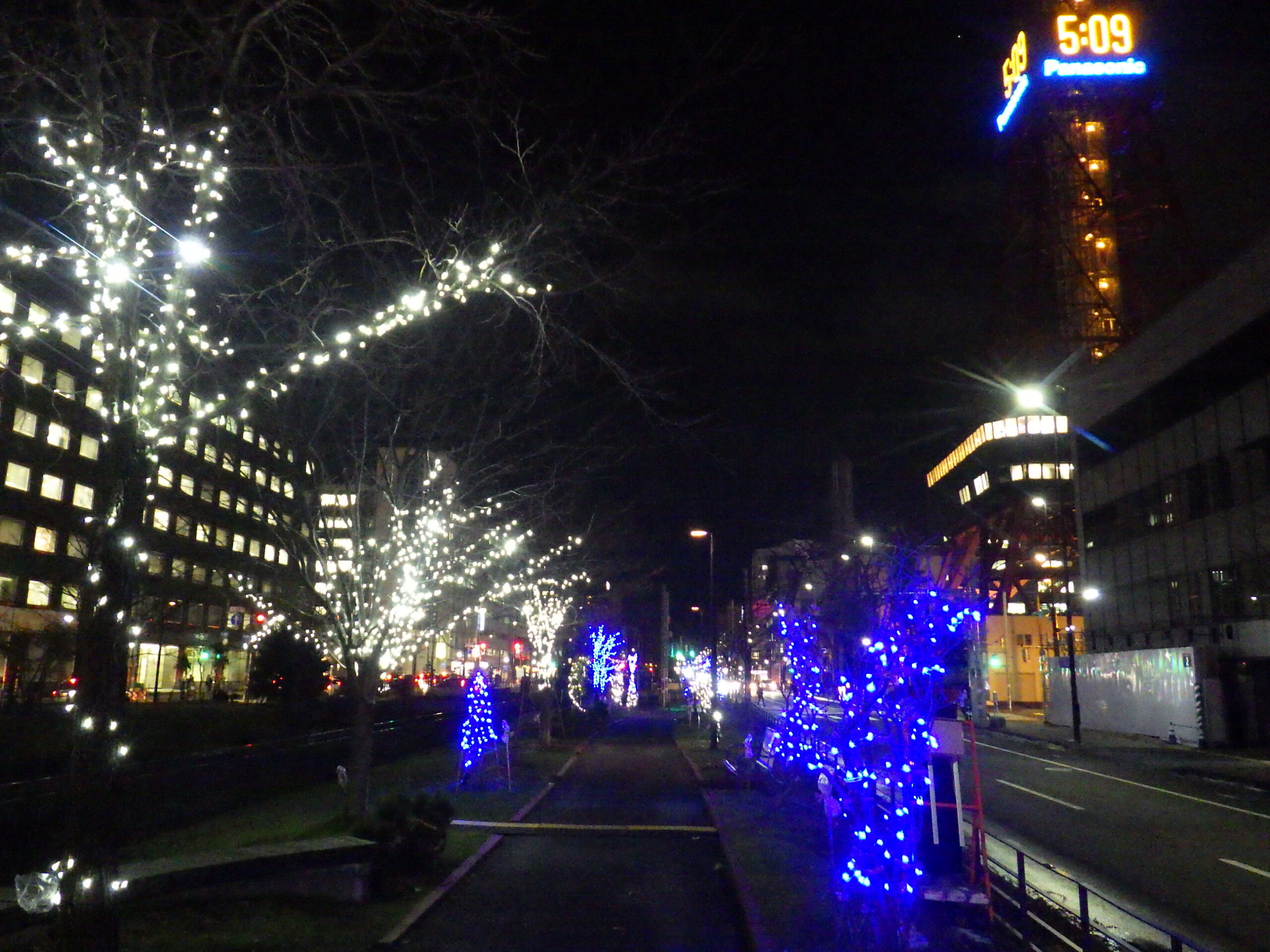 11月29日の創成川公園北1条西側で樹木にイルミネーションされた様子3