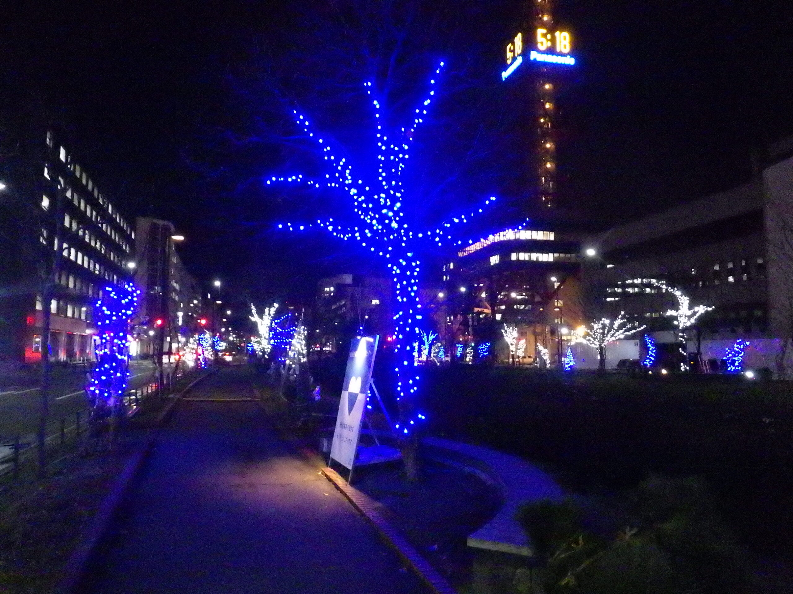11月29日の創成川公園北1条東側で樹木にイルミネーションされた様子4
