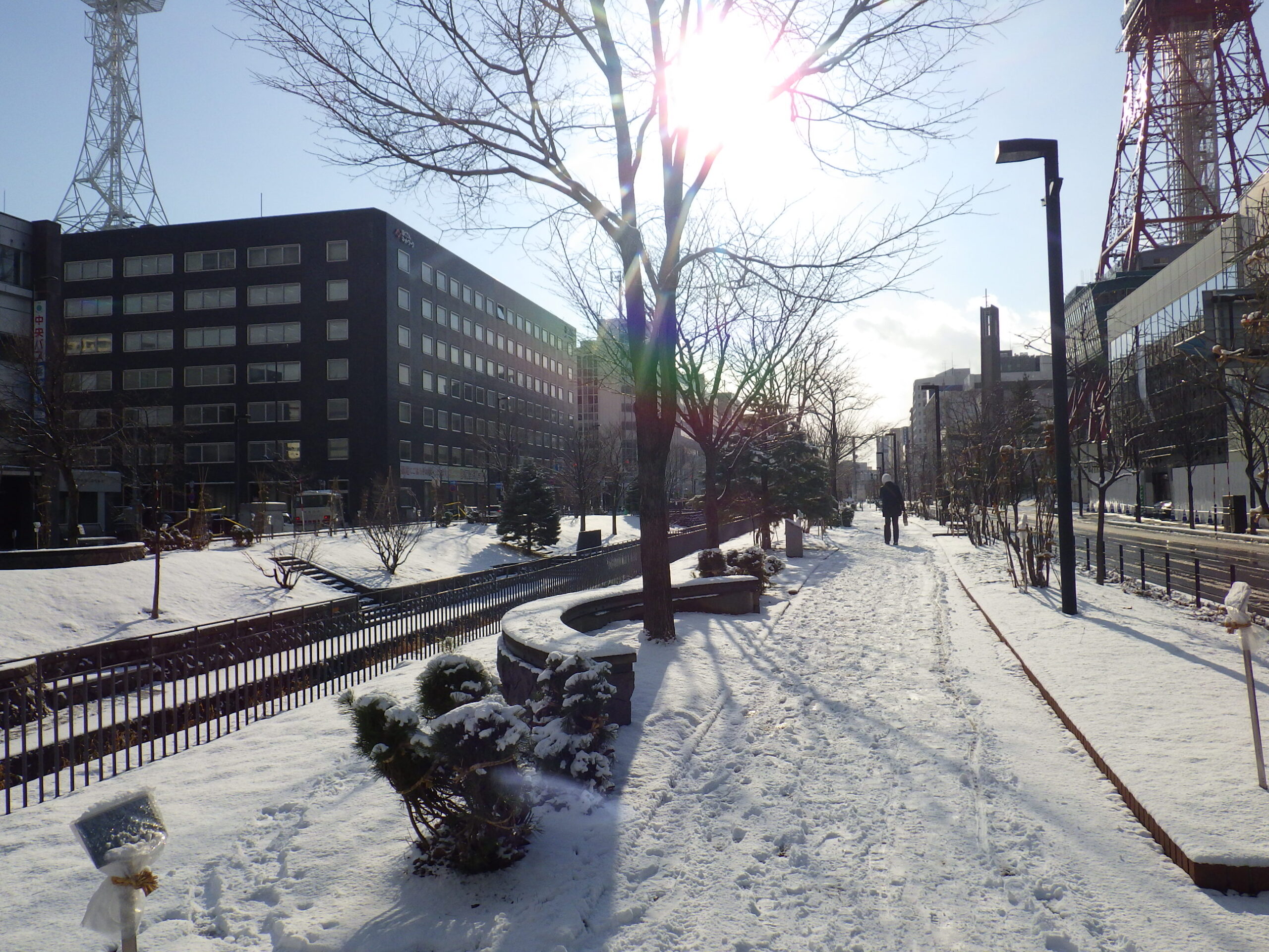 12月13日の雪の降り積もった北1条の様子
