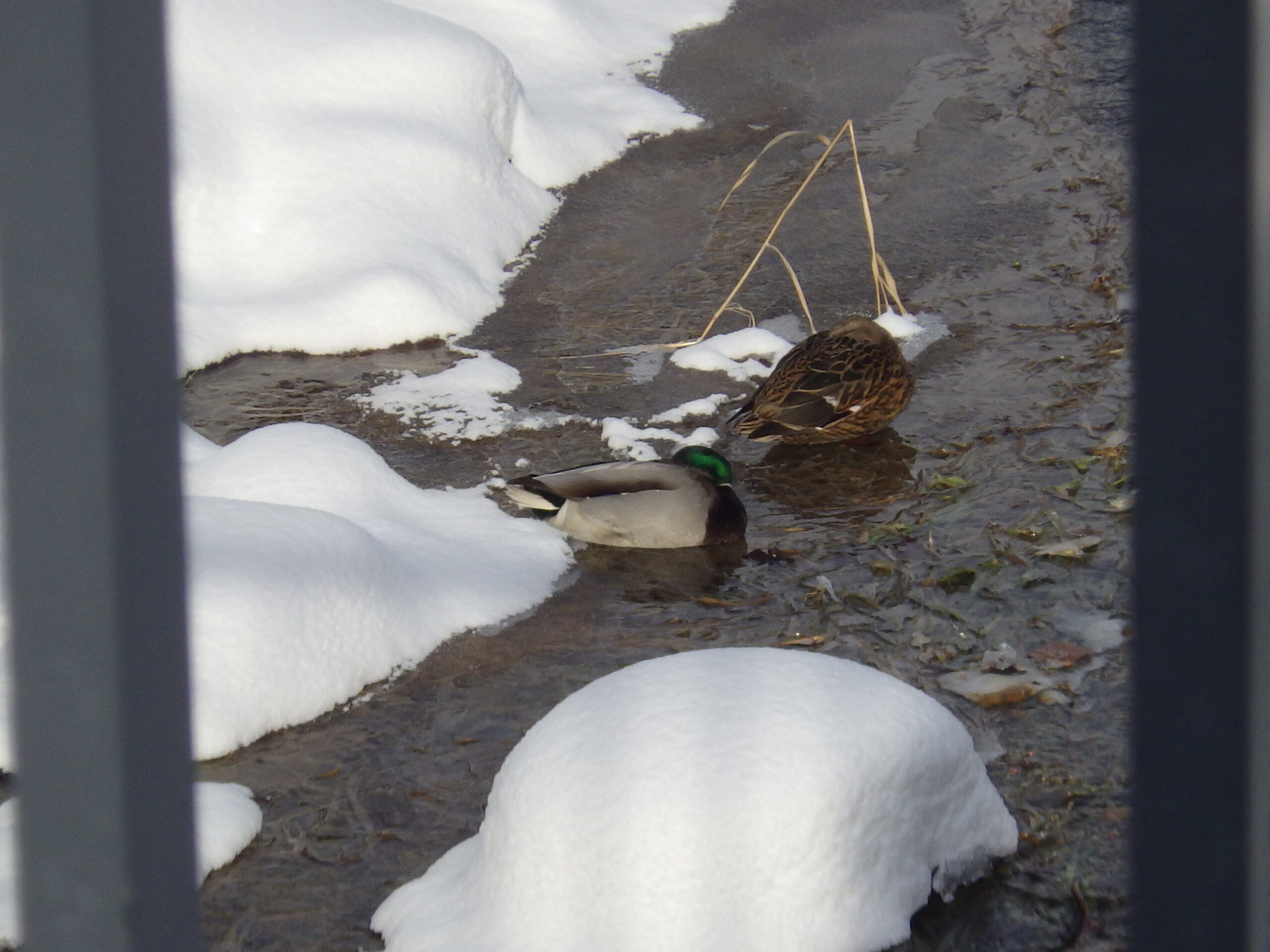 12月27日に北1条の創成川で休んでいるカモたち
