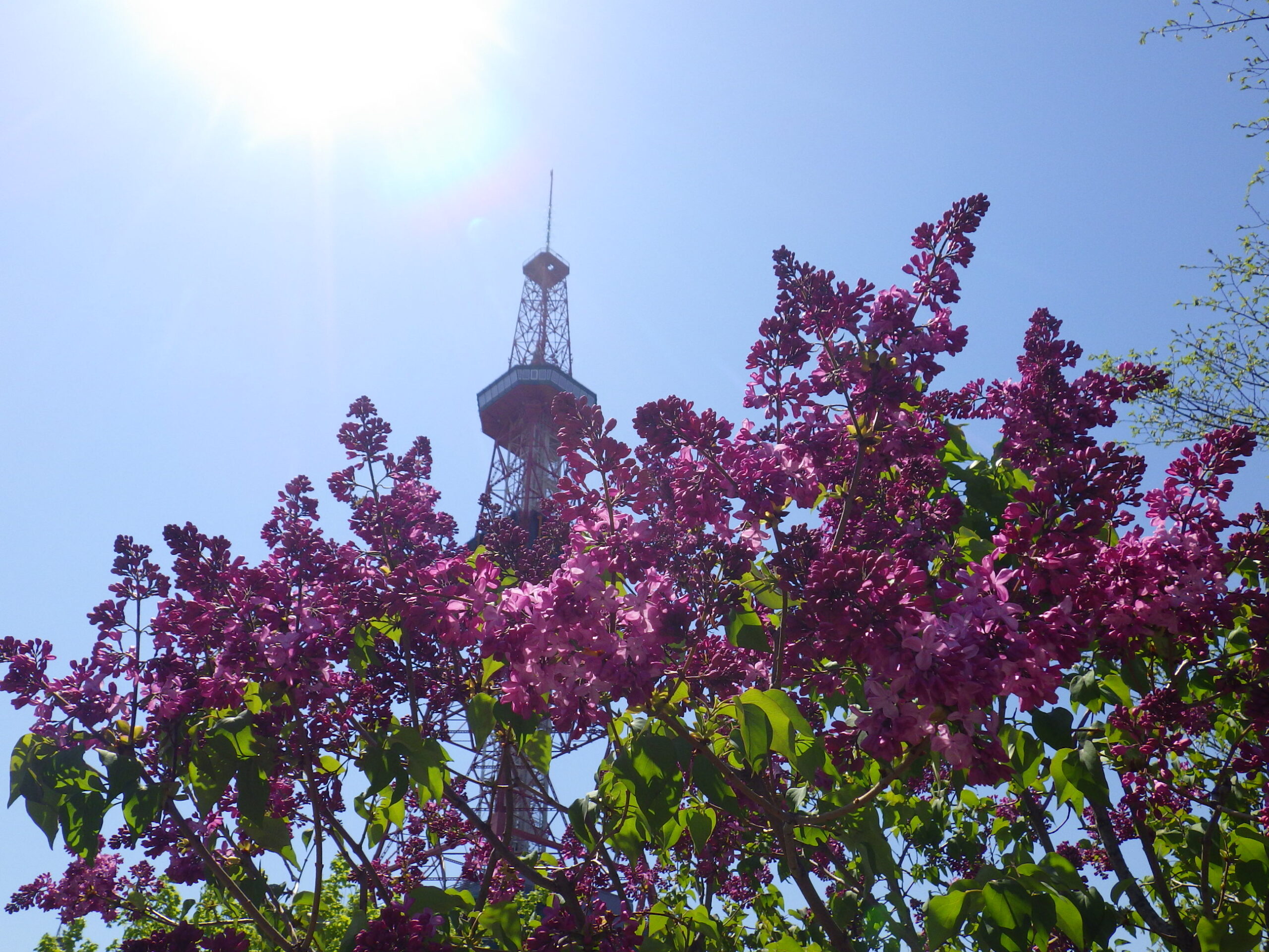テレビ塔をバックにつぼみがたくさんついているエスタースティリーの写真の画像