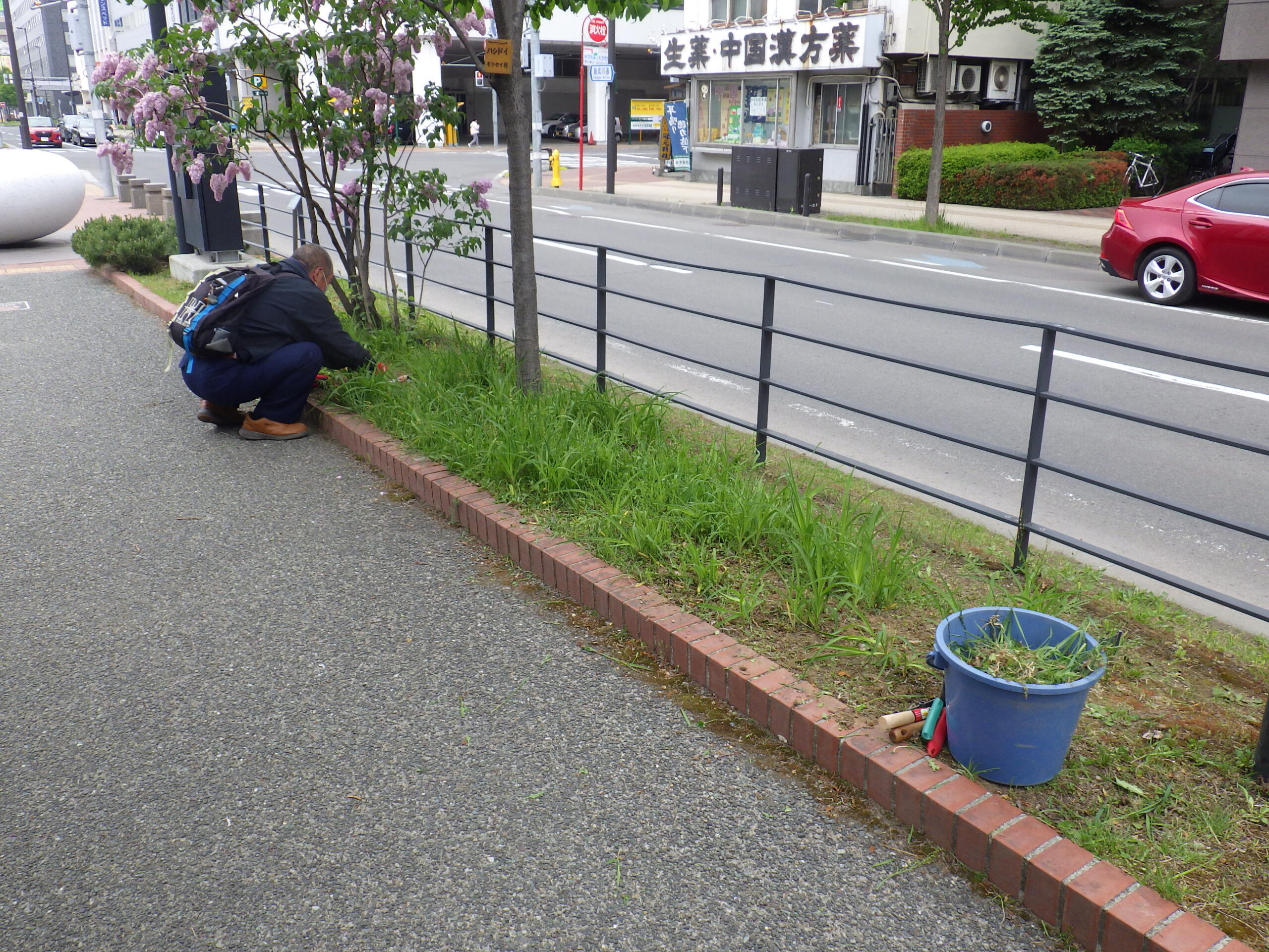 5月24日にヘメロカリス花壇の除草の活動をする植物ボランティア3