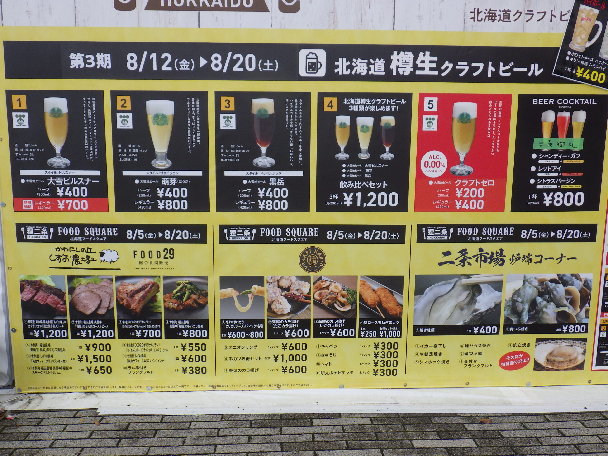 8月12日からの狸二条クラフトビールスクエア第3期のメニューの看板