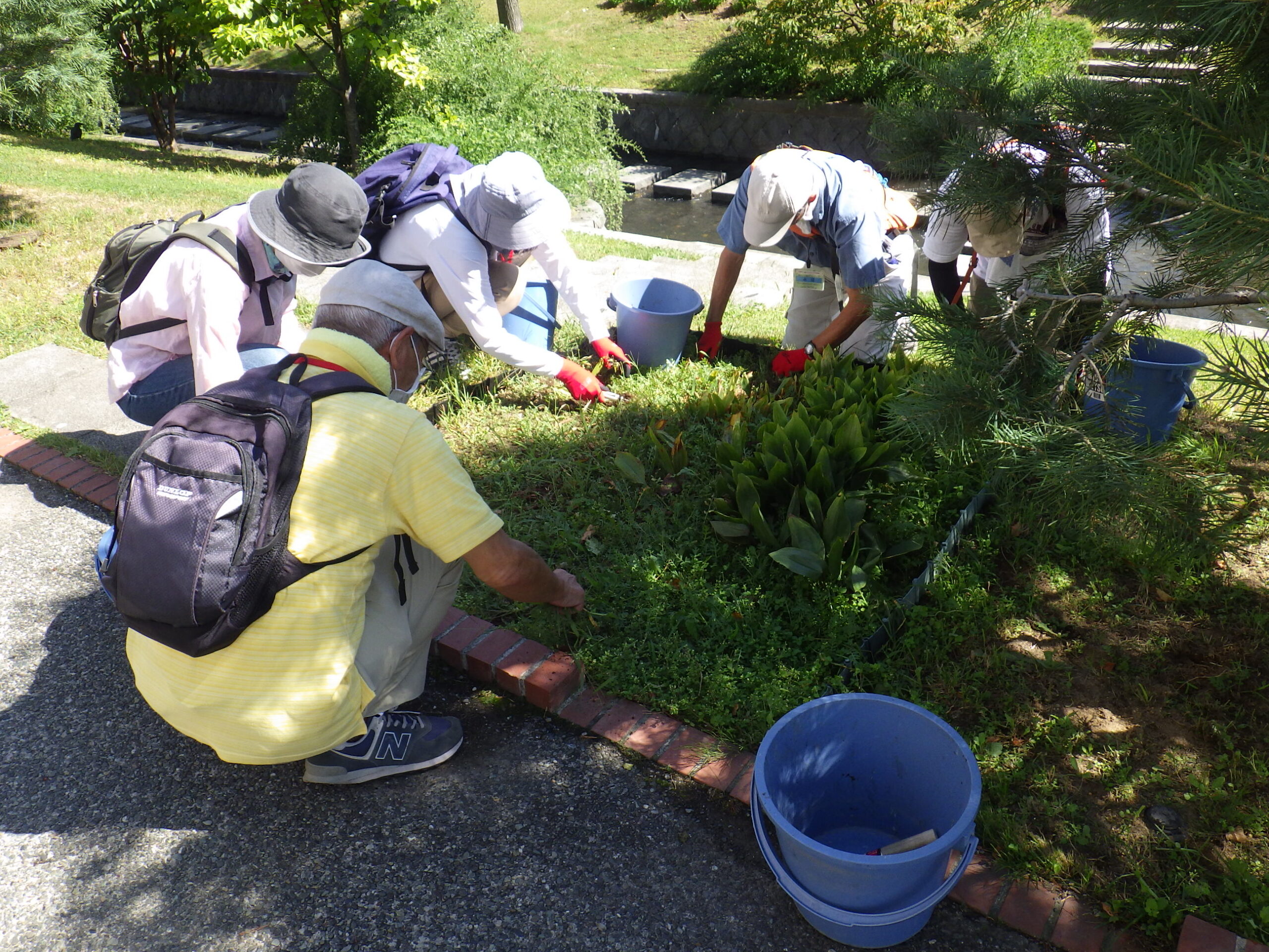 9月7日にスズラン花壇の除草をするお助け隊の様子