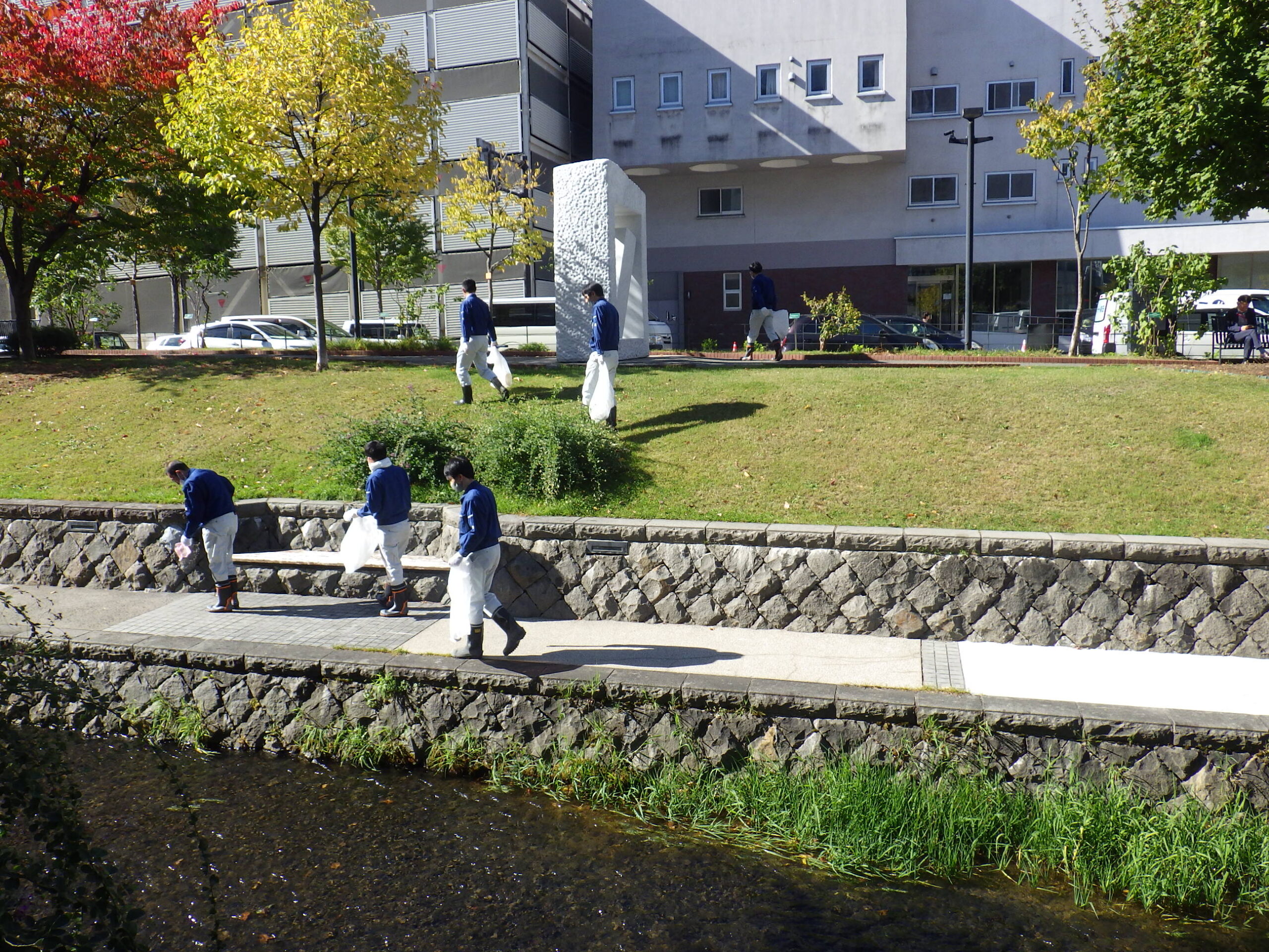 10月13日に行われた企業ボタンティアによる川のごみ拾いの様子