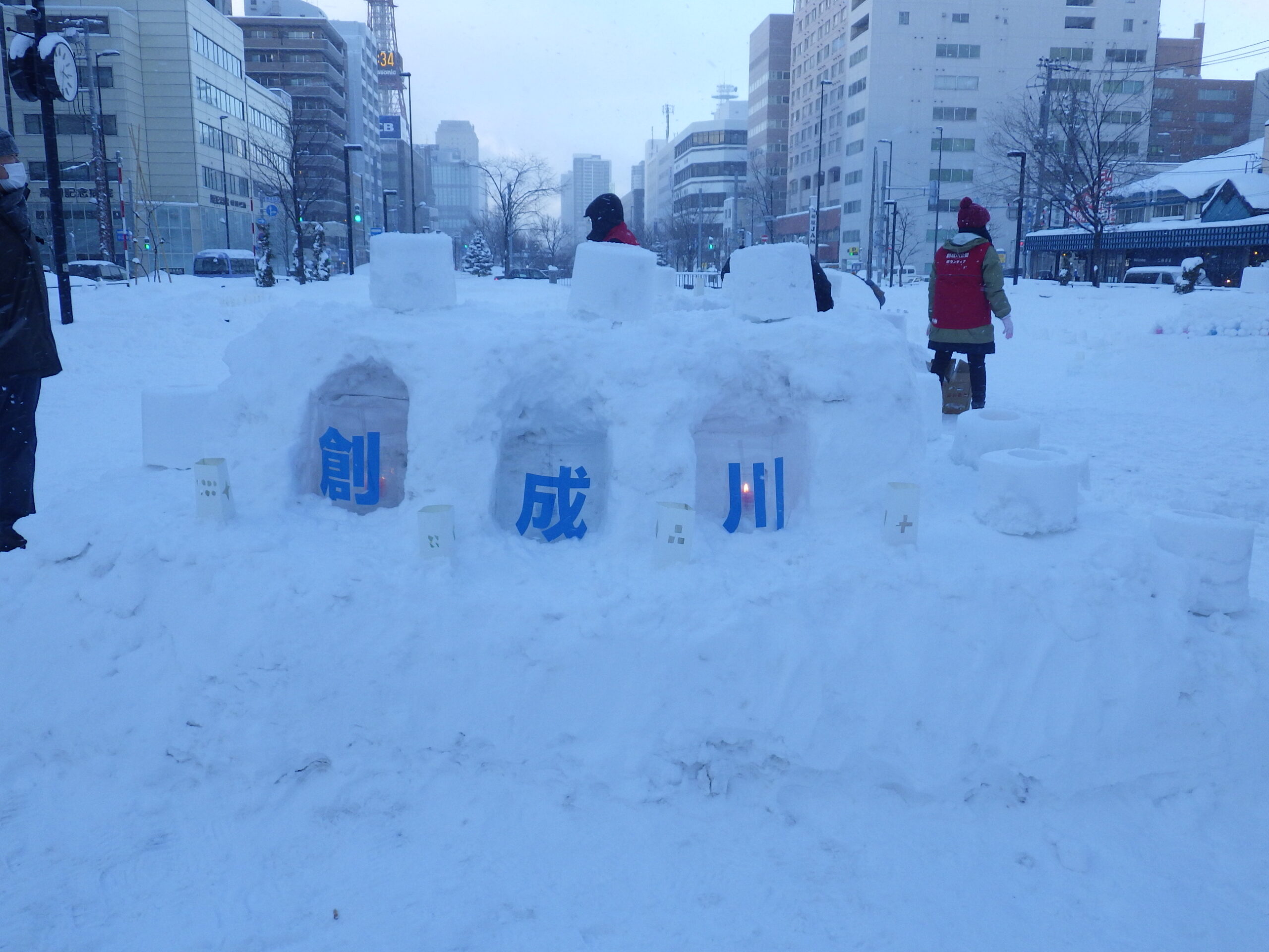 15時半ごろの創成川の文字が並ぶ会場の様子