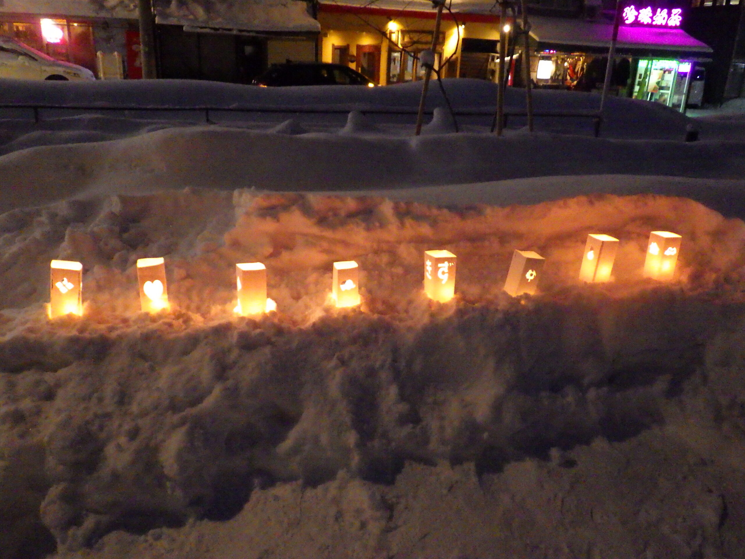 ロウソクに灯りがともった、狸二条広場の様子