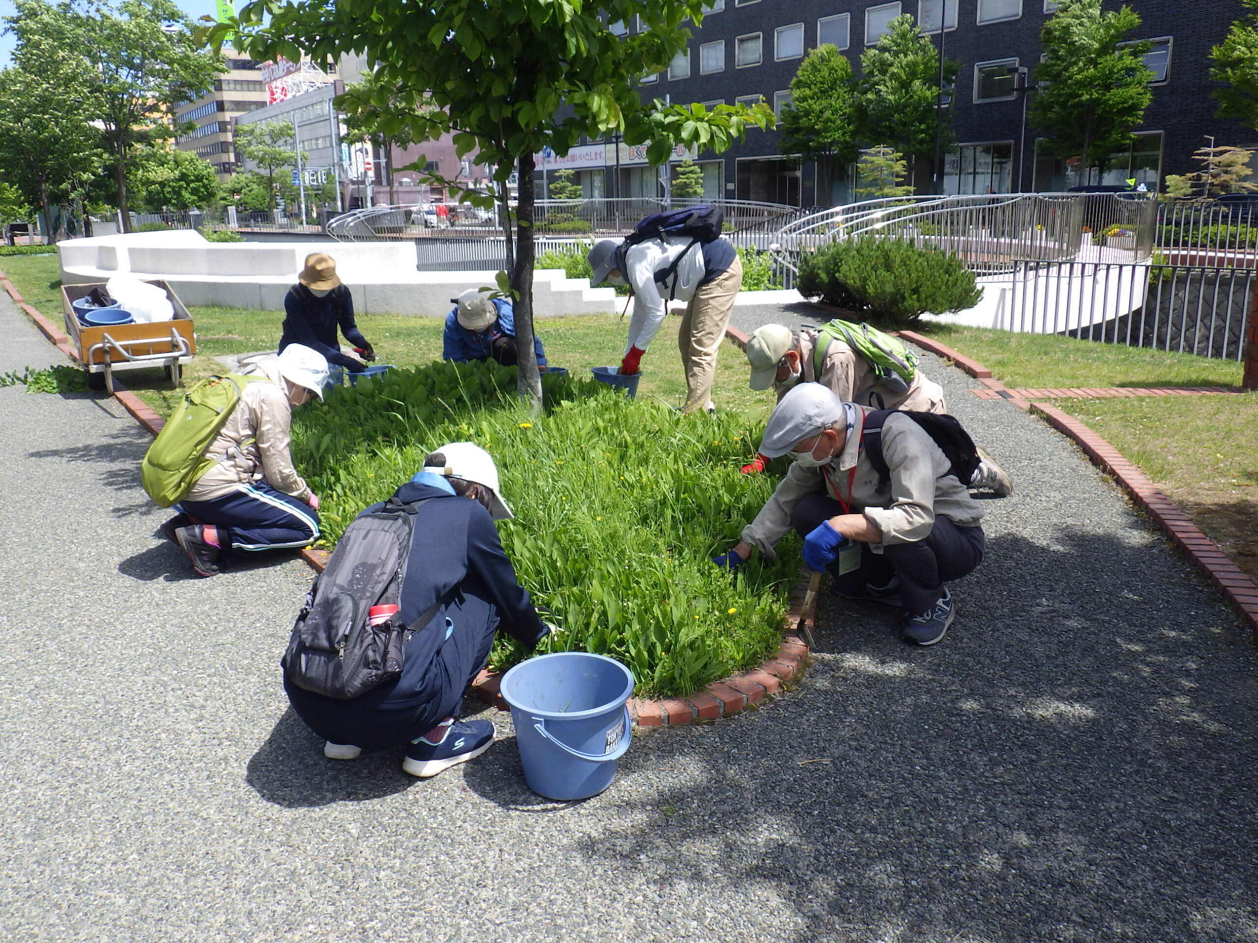 R4年度のお助け隊の活動の様子 スズラン花壇の除草