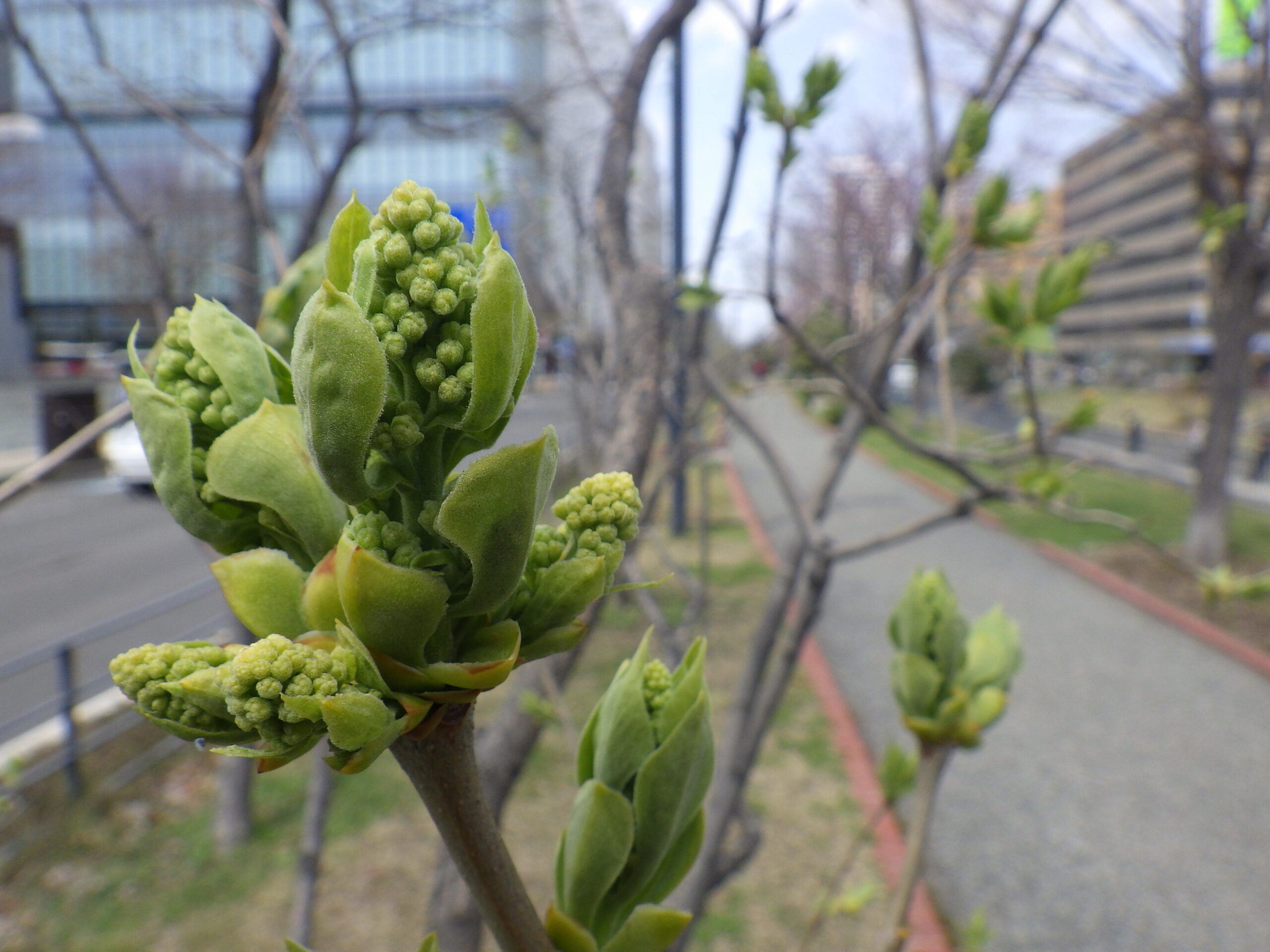 4月12日のライラック、ジェネラルシュリダンのつぼみの様子