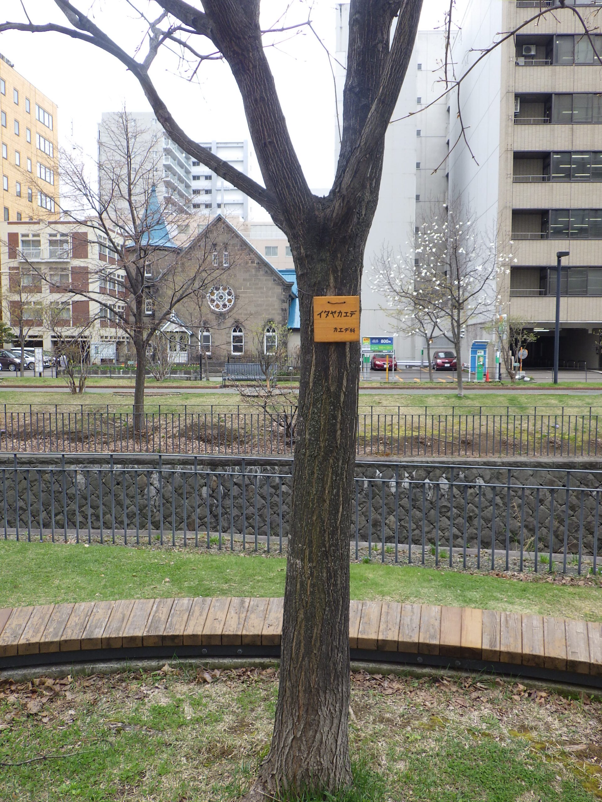 4月18日に植物ボランティアの活動で取り付けられたイタヤカエデの樹名板