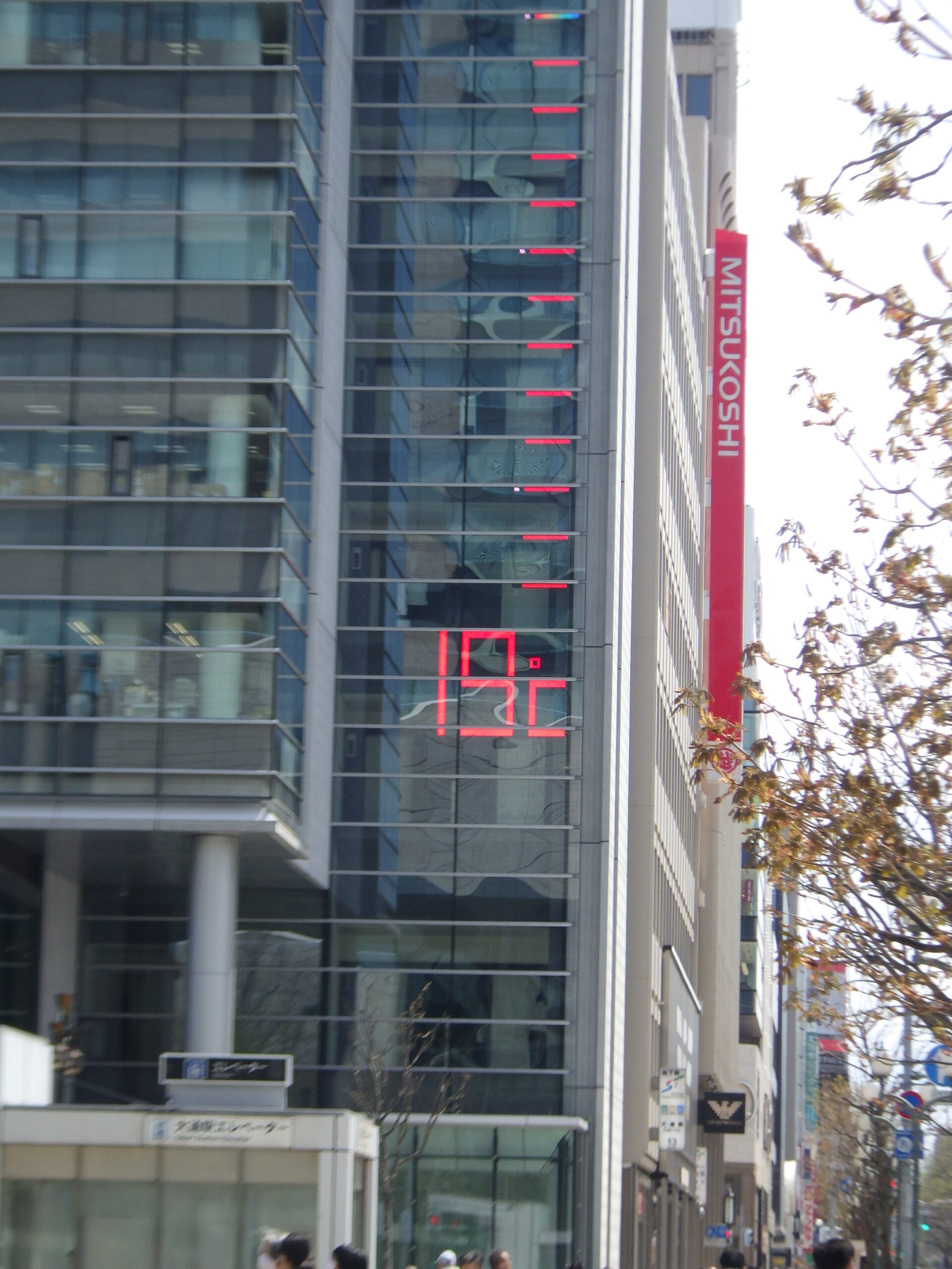 19℃を示すビルの温度計