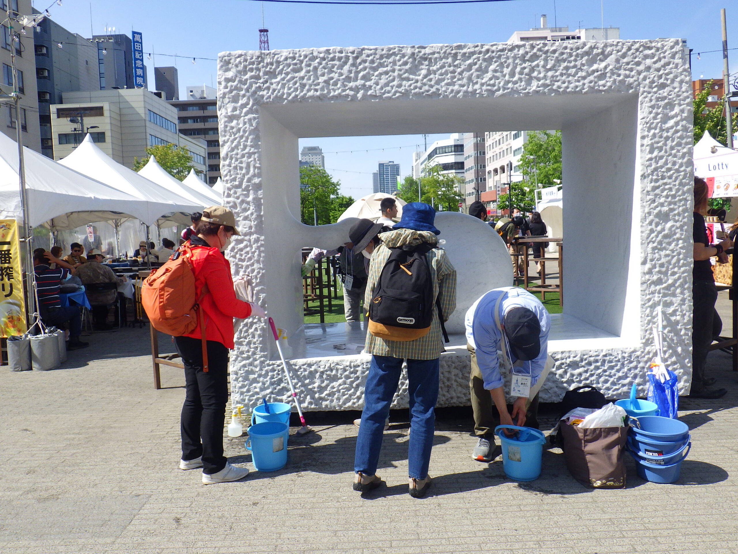 5月20日に生誕の清掃をする彫刻清掃ボランティア
