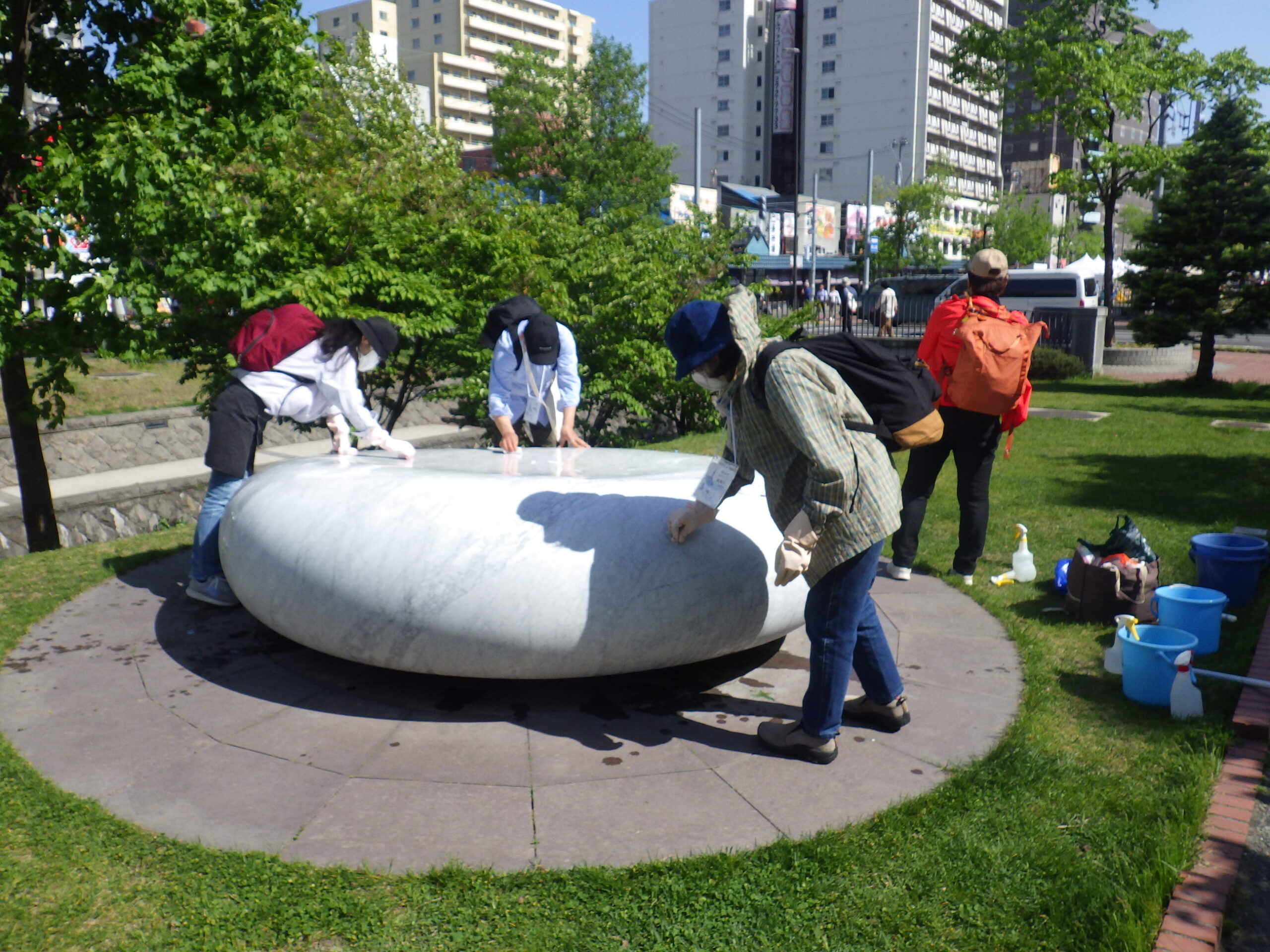 5月20日に天秘の清掃をする彫刻清掃ボランティア