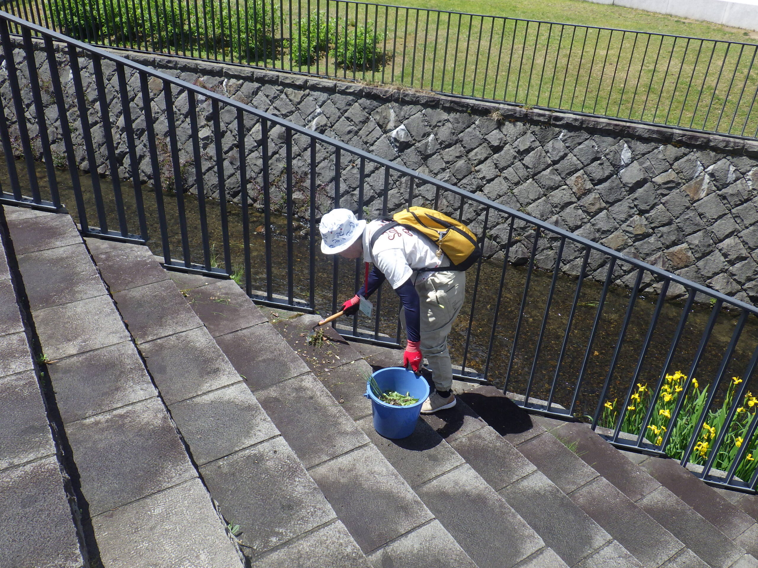 5月31日に園路と階段の除草をするお助け隊