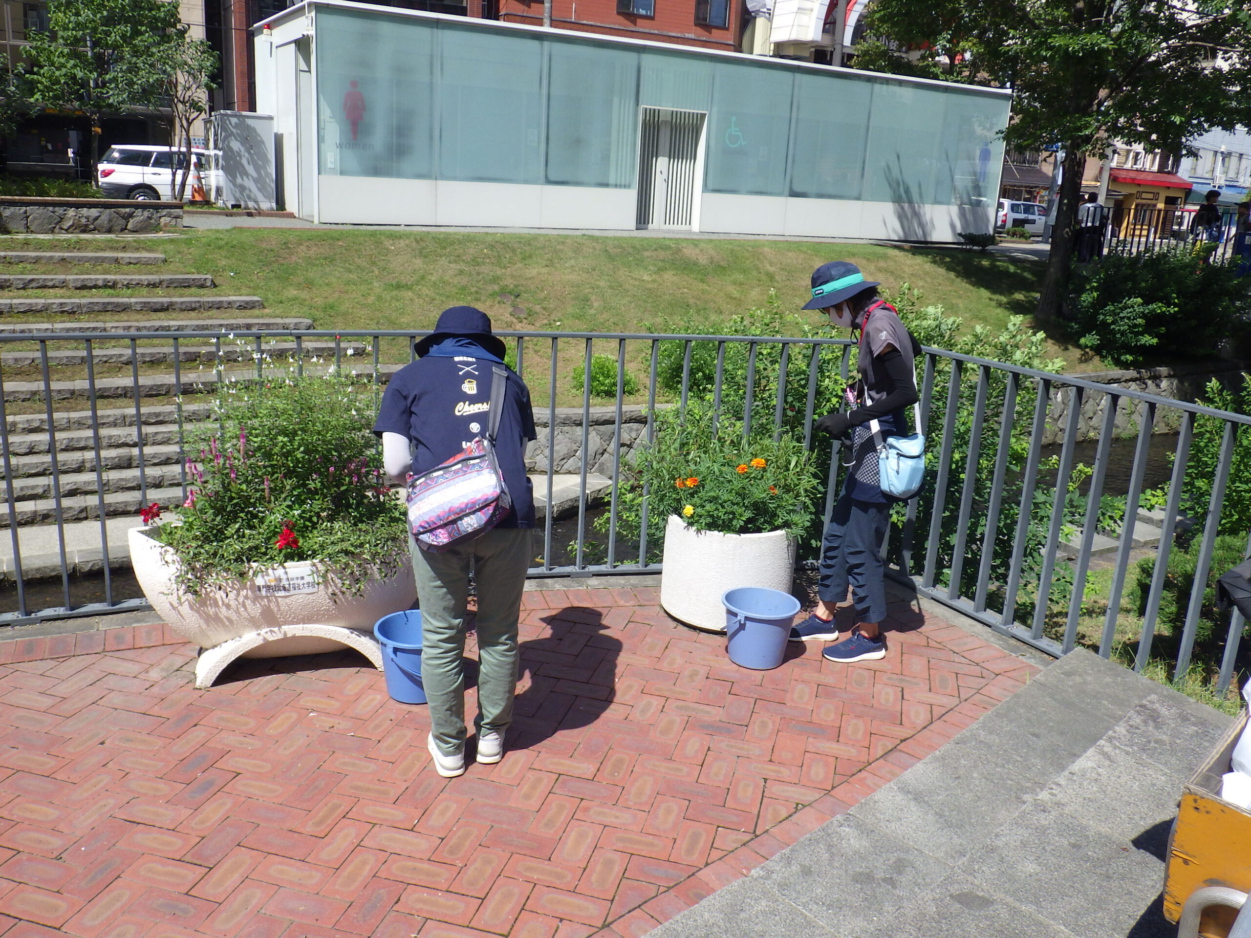 8月10日にコンテナ花壇のお手入れをする花くらぶ