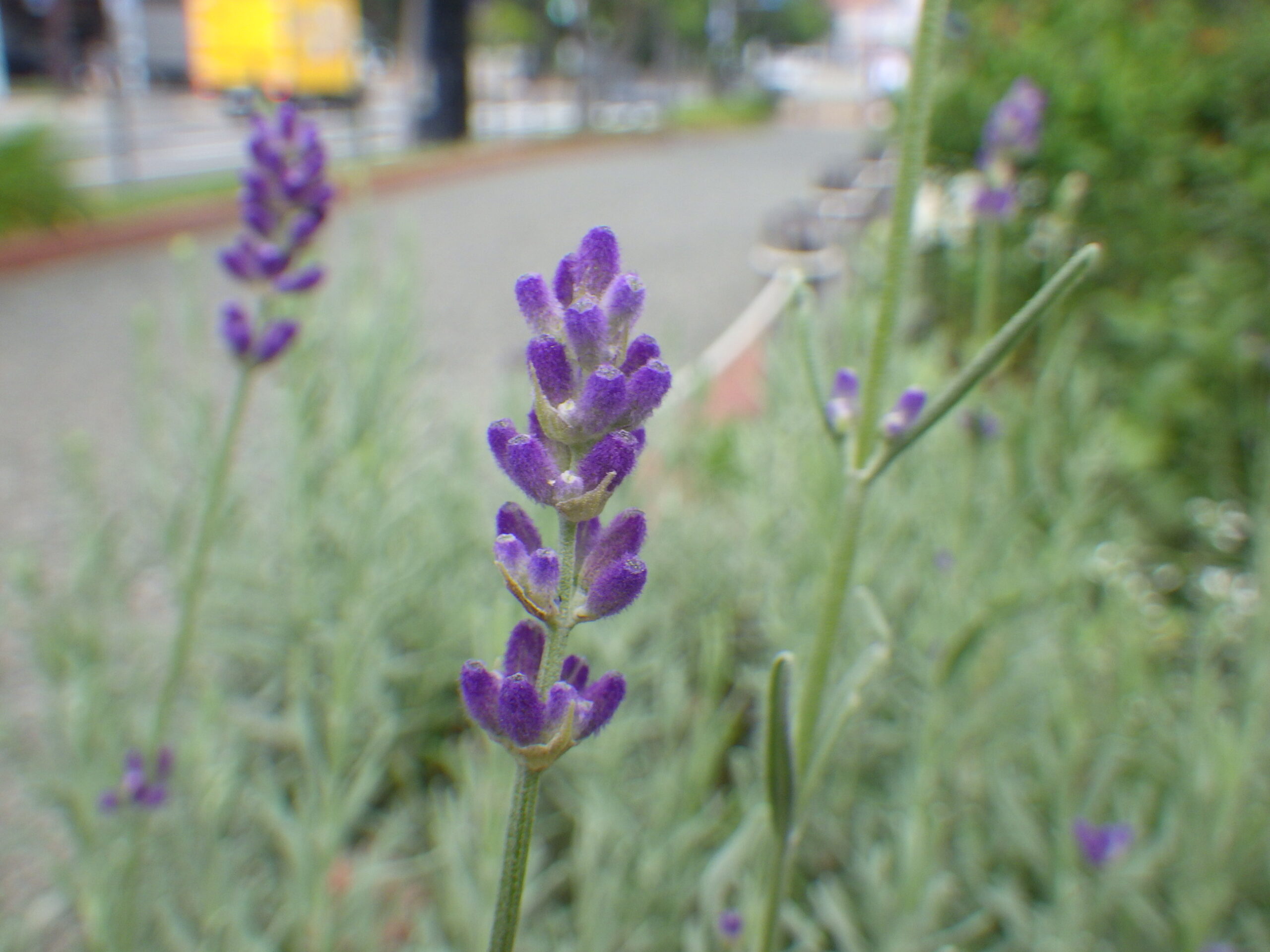 8月24日に花クラブが活動で手入れした花壇のラベンダーがつぼみをつけている様子