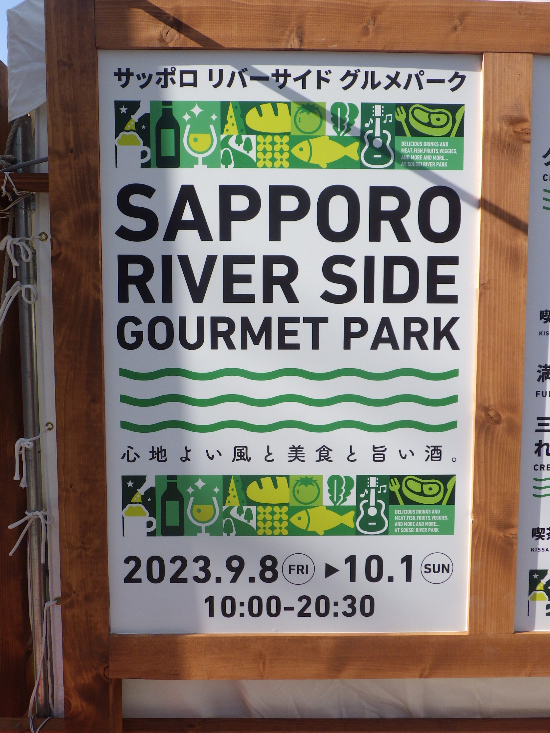 9月8日から始まるリバーサイドグルメパークの看板