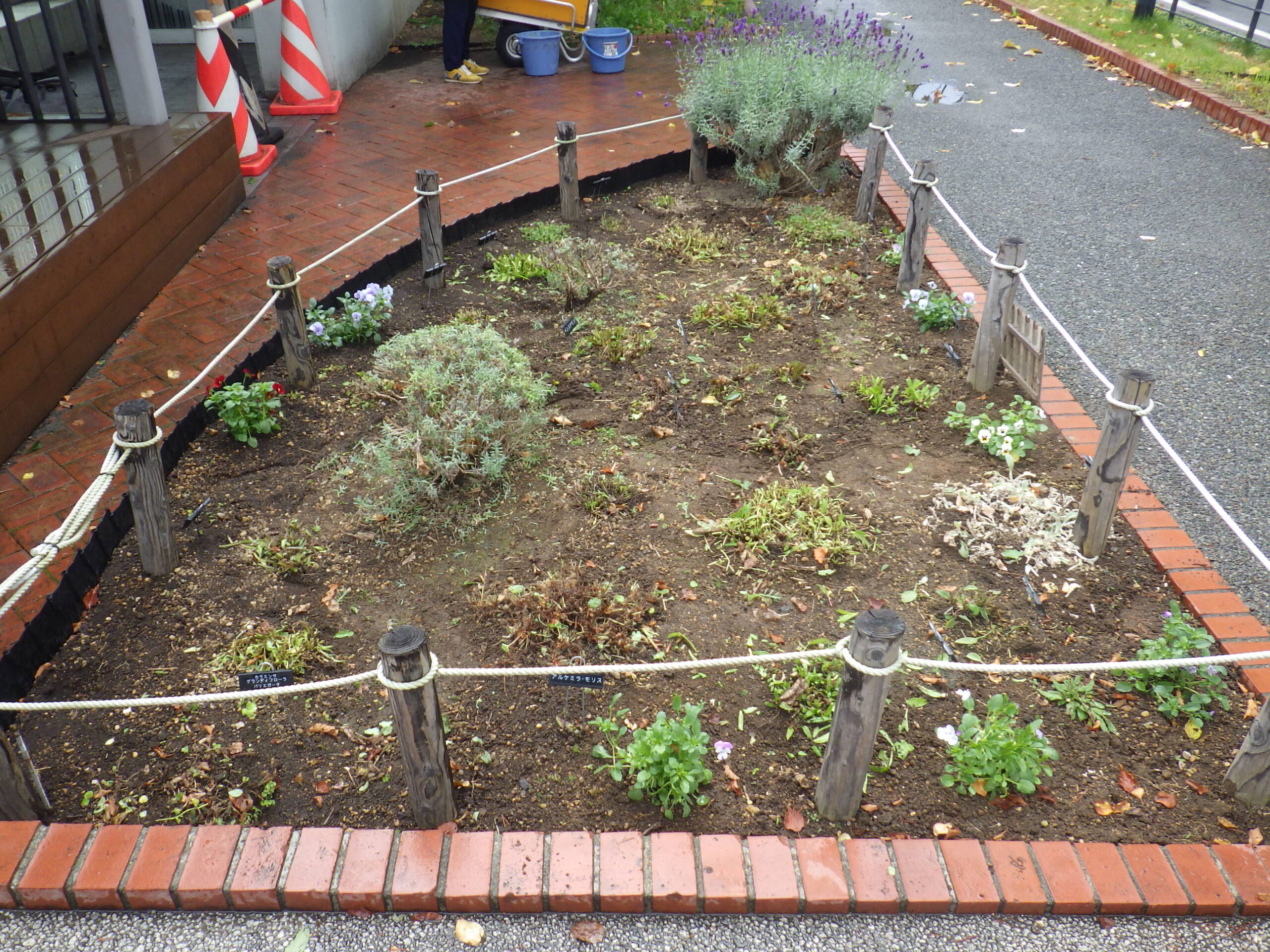 冬支度された花壇