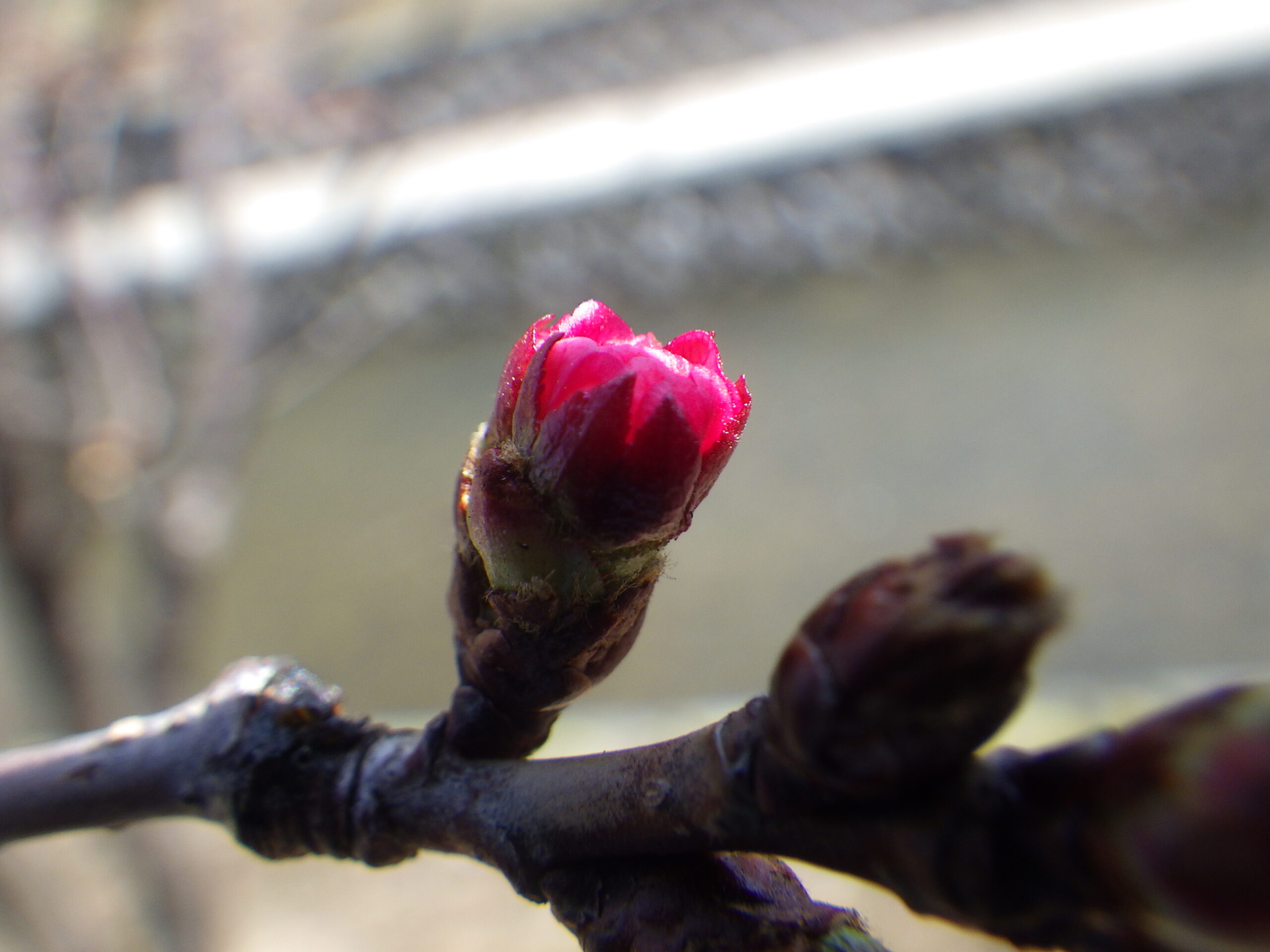 4月14日のチシマザクラのつぼみが膨らんでピンクになっている様子