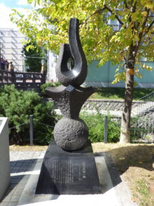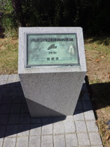東側の園路には「タイムカップセル」があります。公園ができたときに小学生の子供たちが団塚栄喜さんの指導を受けて作成した作品が入れられています。2030年に開ける約束となっているとのこと。