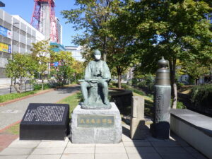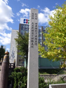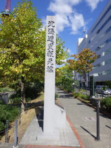 南1条のこの辺りは「開拓の広場」と呼ばれていて、札幌のまちが作られた歴史を物語るモニュメント「北海道里程元標」や「札幌建設の地碑」「大友亀太郎像」などが置かれています。