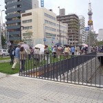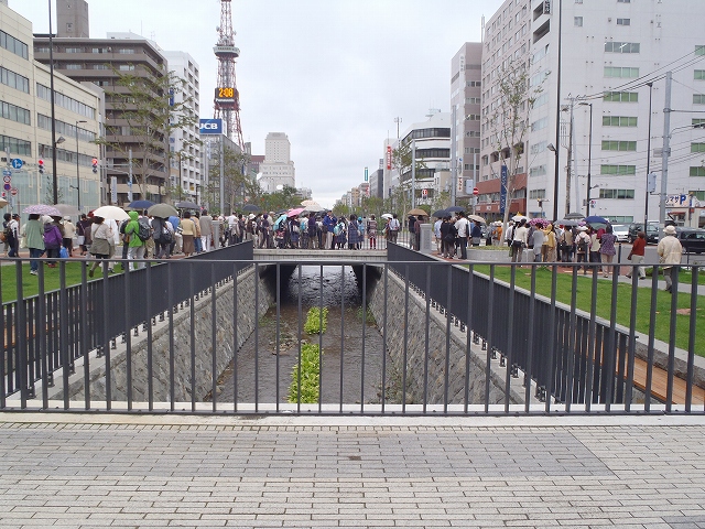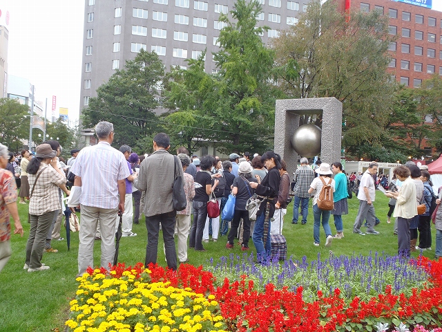解説ツアーのAコース(大通り公園→創成川公園→狸小路)が9/17の午後1時から各公園の彫刻を巡り歩きました。