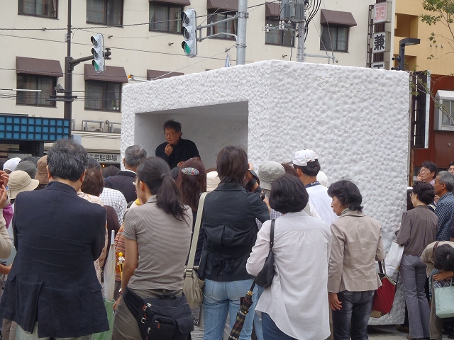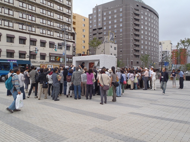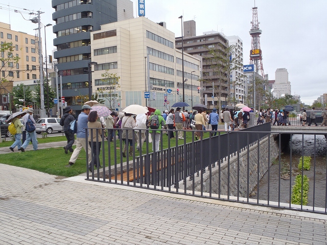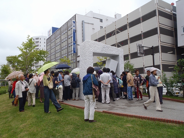 創成川公園「生誕」の前では、「アルテピアッツァ美唄」の主催でバスでやってきた