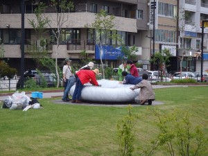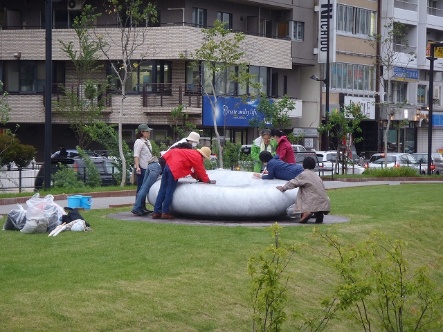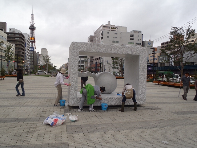 野外彫刻展の解説ツアーも終わらないうちに、創成川popoloの皆さんは いつものように、作品の清掃活動を始めていました。 だんだん寒くなってきますが、次月もよろしくお願いいたします。 次回は、10月15日が第3土曜日となります。