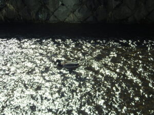 創成川では、太陽の光を浴びて、カモが気持ちよさそうに泳いでいました。