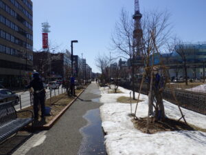 この日は、大通西3丁目のビルの温度計も16度を表示する暖かさ。