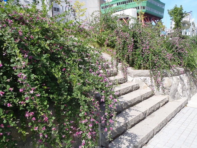 の影響を受けやすいですが、通りとのボーダーにハギを列植することで、