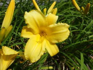 7月13日のお助け隊の活動で、ヘメロカリス花壇に、品種の名前を書いた名札を付けました。 これは、紅雀です。 今咲いているヘメロカリスと名札です。 この名札は、すべてボランティアさんが手づくりしたものです。 公園で色々な名前のヘメロカリスを探してみてください。