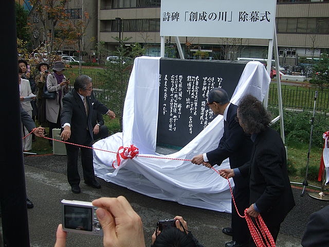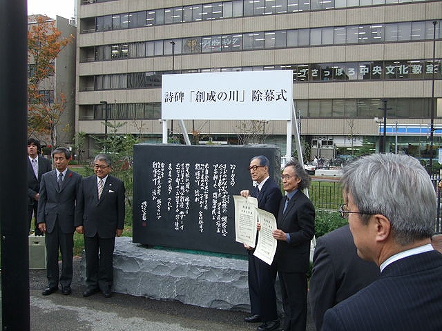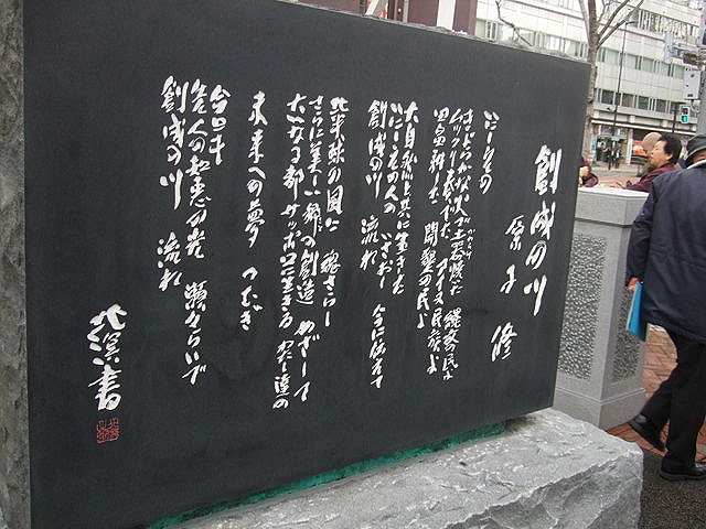 北1-2条ブロックの西側に「創成の川」という詩の碑ができました。