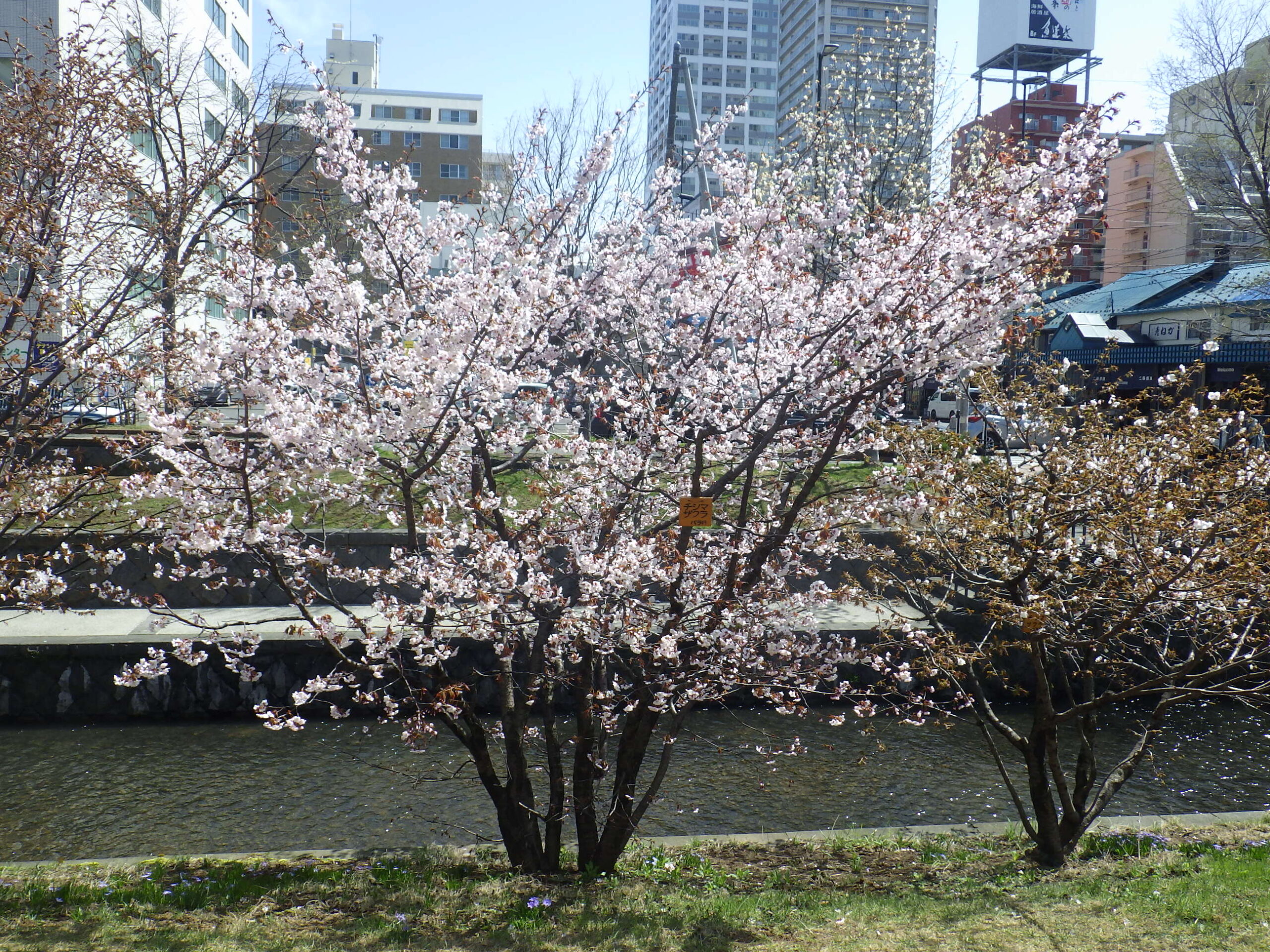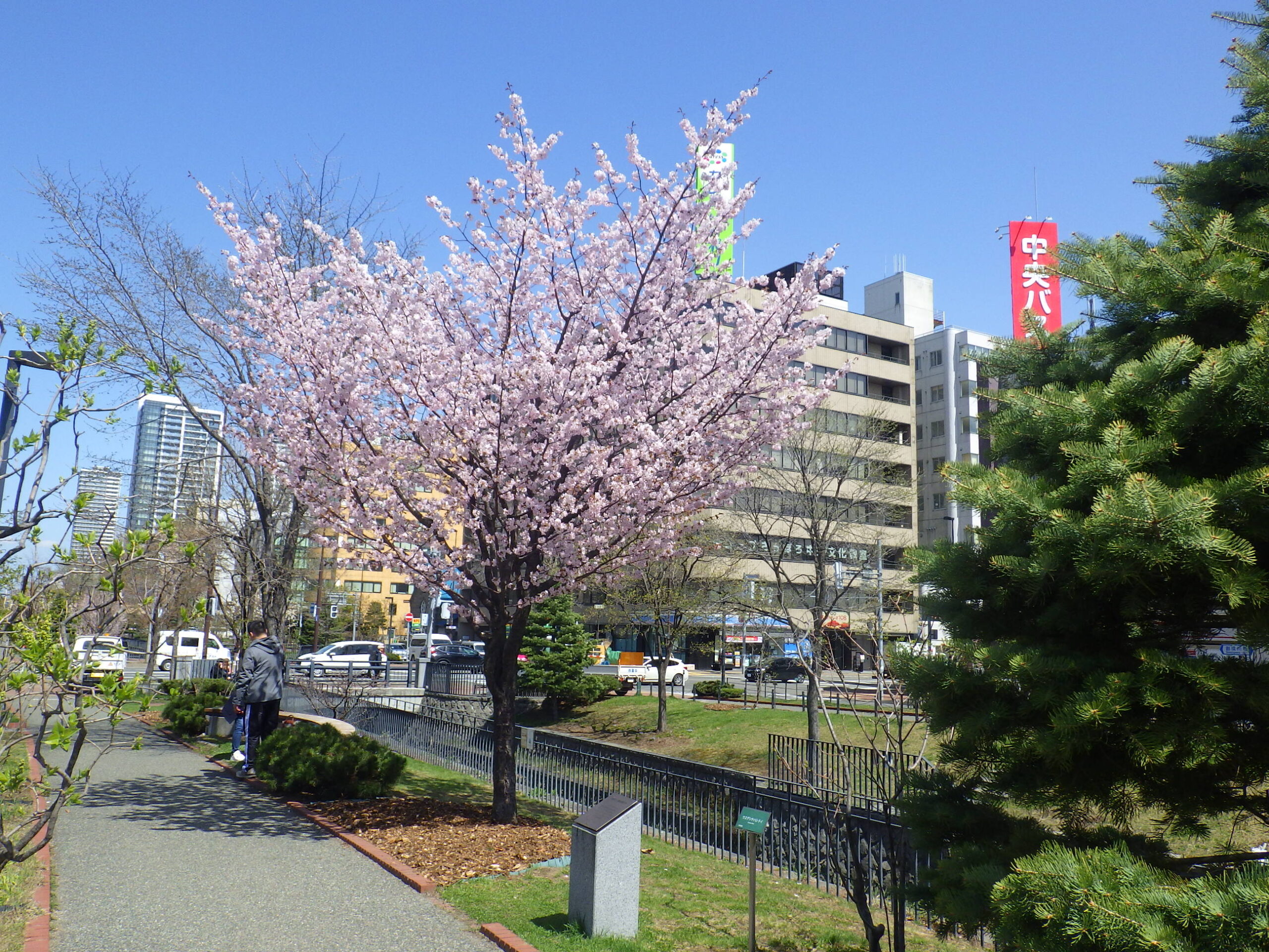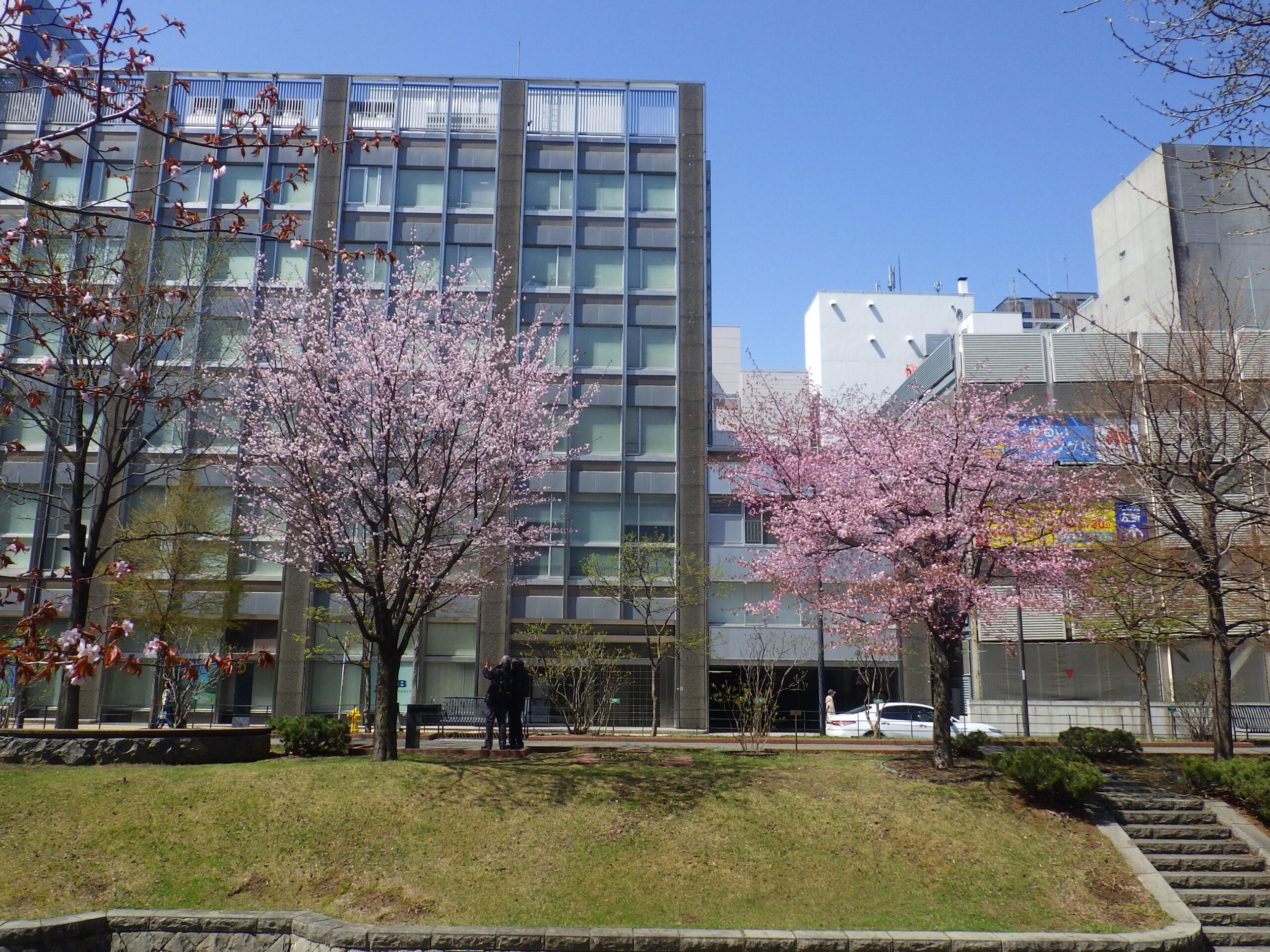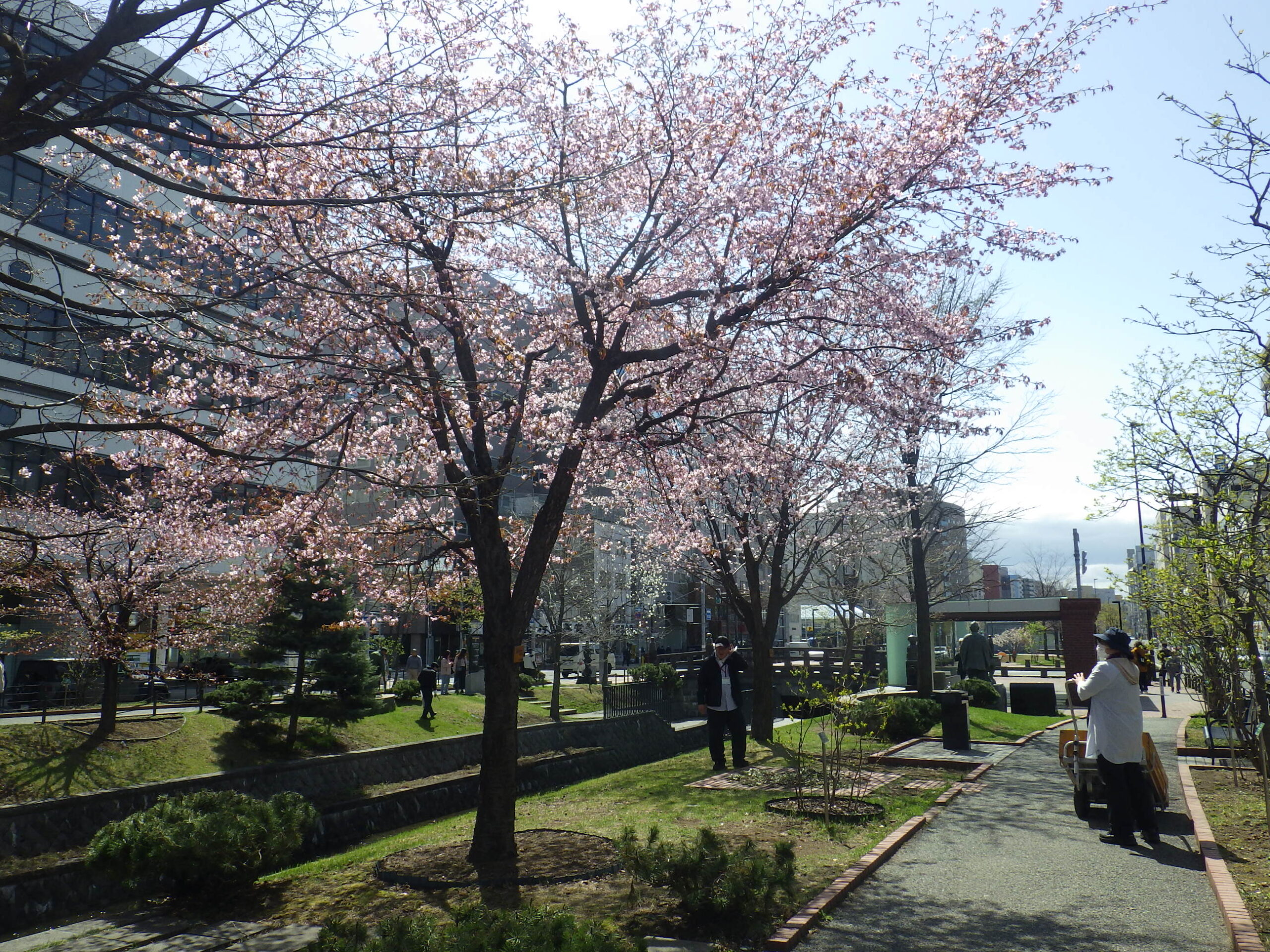 4月23日火曜日、公園内では「エゾヤマザクラ」「チシマザクラ」が満開でした。 北1条、手前の花がチシマザクラ、向かい側がエゾヤマザクラです。 南1条西側のエゾヤマザクラ 北1条西側のエゾヤマザクラ こちらはチシマザクラです。 南2条西側のチシマザクラ 北2条のチシマザクラ 公園の南側の桜たちは満開までもう少しかかりそうです。 園内でもうしばらく桜が楽しめるかもしれません。