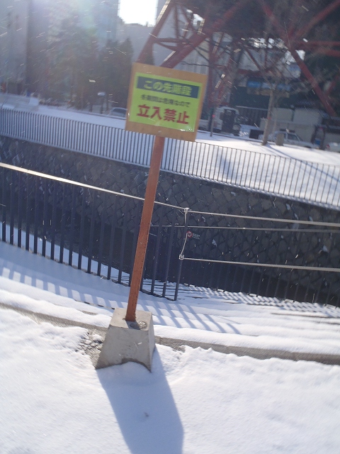 公園内には、冬の間、立入禁止の看板などを設置しています。